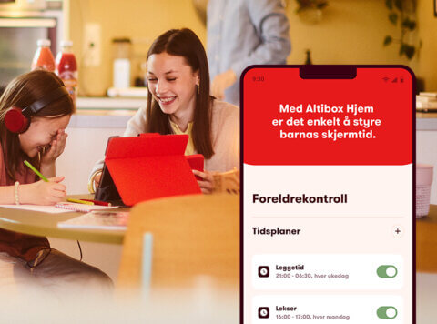 I mange familier er skjermtid en kilde til diskusjon. Med Altibox Hjem kan du sette faste rammer, slik at internett automatisk skrus av til bestemte tider.